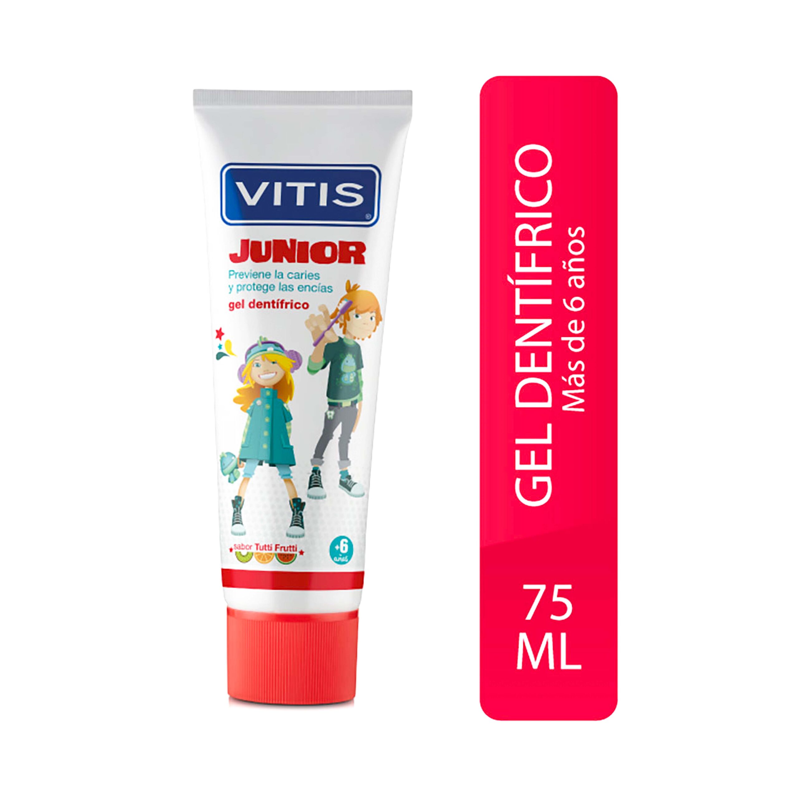 El gel dental Vitis Junior te ayuda con la limpieza e higiene bucal en sabor tutti frutti. Su fórmula con flúor, pantenol y xylitol te brindan un cepillado profundo mientras cuida tus encías y dientes.