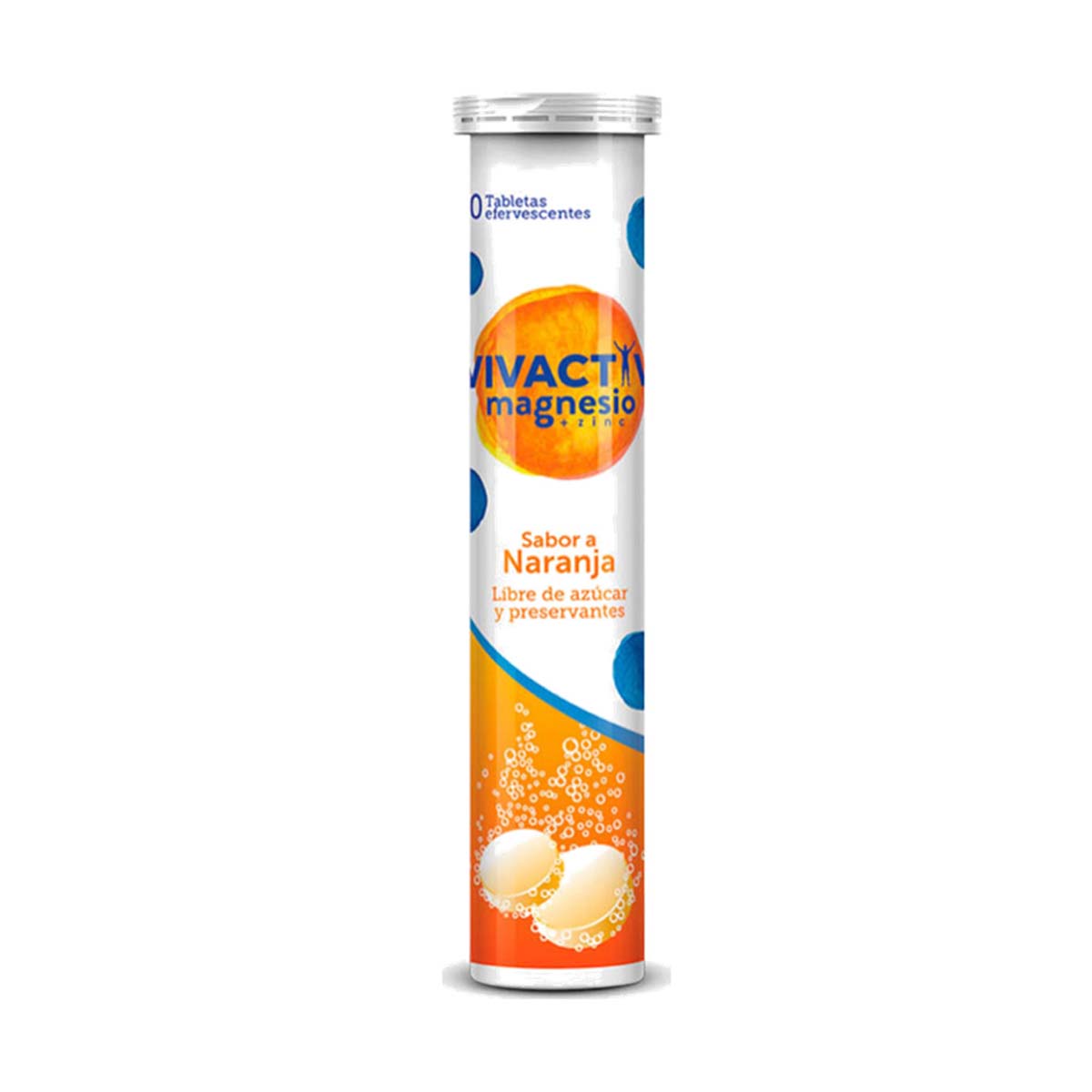 Vivactiv magnesio + zinc suplemento nutricional efervescente, sabor naranja,libre de azúcar y preservantes. Hecho en alemania.